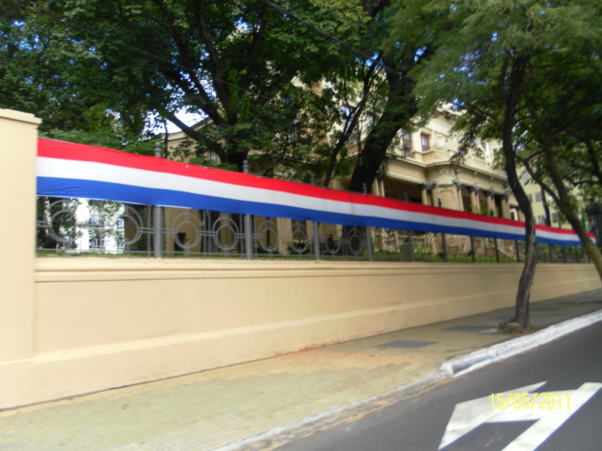 Ornamentación del edificio del Tribunal Permanente de Revisión para los festejos del Bicentenario de la República del Paraguay. 15/May/2011). |