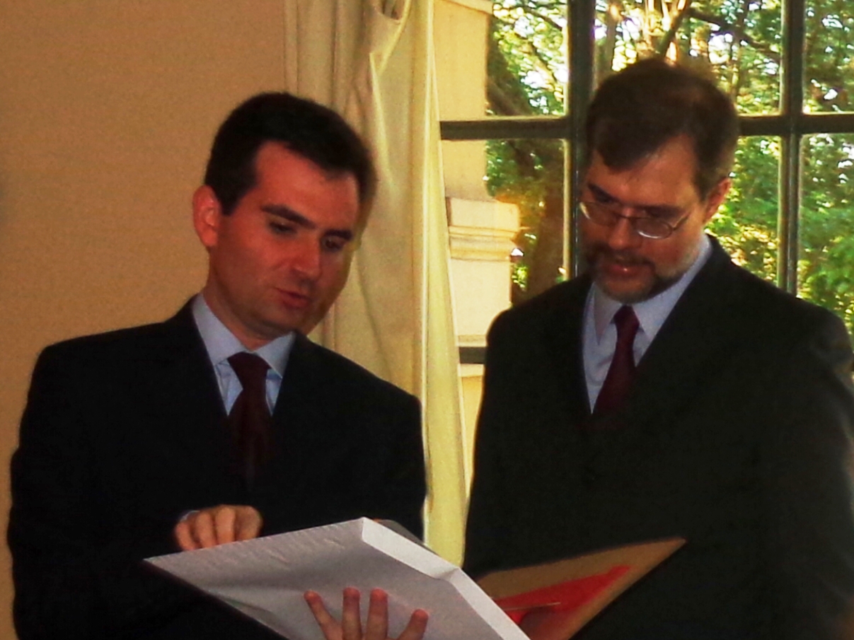 Desayuno de despedida por término de misión al Asistente Social Christian Adel Mirza Perpignani, director del Instituto Social del Mercosur. 19/Ago/2013. |