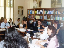 Reunión de representantes de la SAS y el ISM: "Políticas sociales del Mercosur, Conosur y Paraguay: Principales nudos problemáticos y miradas complejas al sistema de protección social". 14/Dic/2011. |