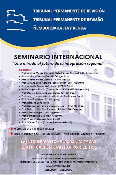 Seminario Internacional: "Una mirada al futuro de la integración regional", 21 al 24 de mayo de 2013. |