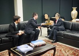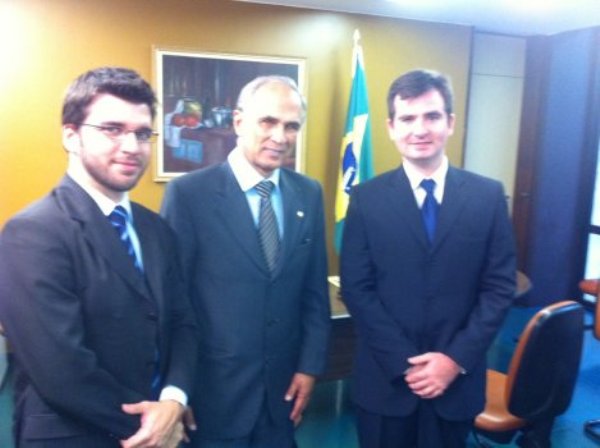 O Secretário do TPR, Raphael Vasconcelos, em audiência com o Presidente do Supremo Tribunal Federal brasileiro, Carlos Ayres Britto, acompanhado do representante do Itamaraty, Marllon Abelha. |